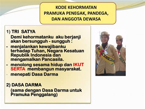 KodekehormatanpramukapenegakdanpandegaterdiriatasTrisatyapramukapenegakdanpramukapandegadanDasadarma.